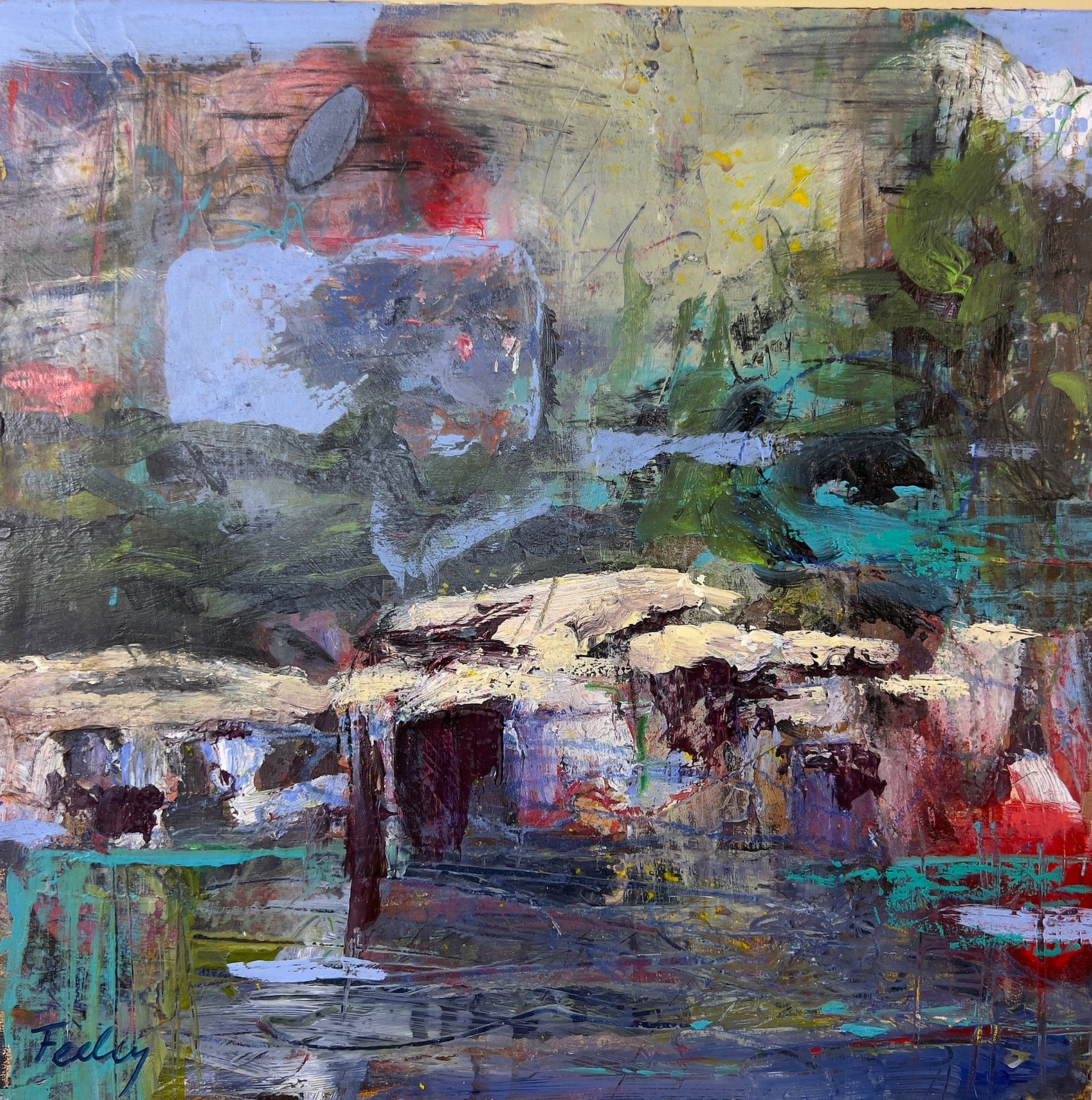 Boat rides give a passing view, there is water, trees, rocks, and wildlife. I wanted to capture the feeling of the experience. Staying loose and using collage was a way to portray the energy of being on a boat and the impressions as they go by.