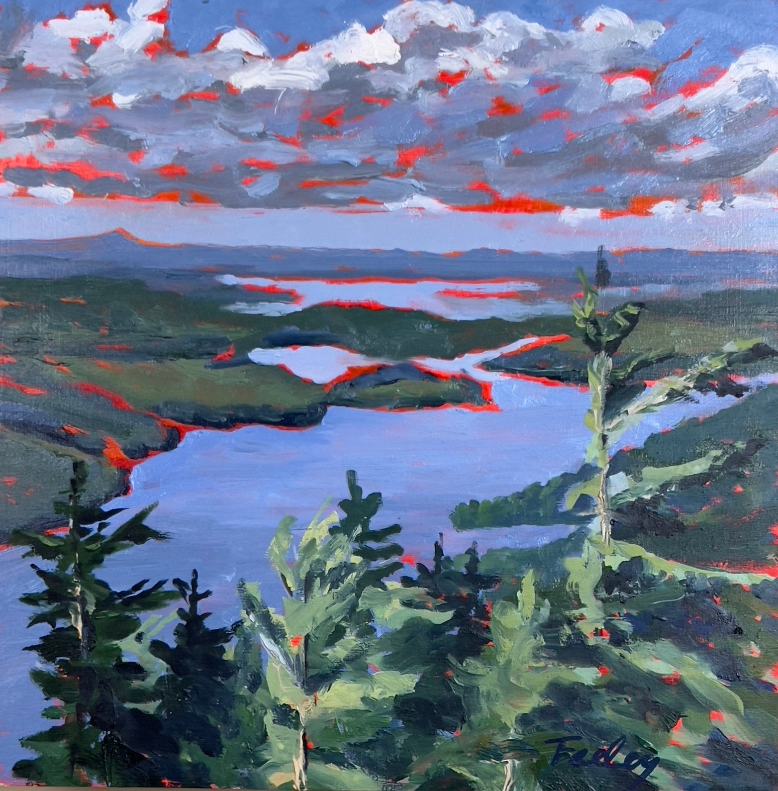 This usually is my first hike once I arrive in Maine. This hike has it all. It's a good warm-up for an upcoming hike and the views catch my breath every time. From here I can see one of the lakes I swim in and further off the island to Blue Hill. This view captures all of what I love about Maine, the smell of pines, the clouds, and water.