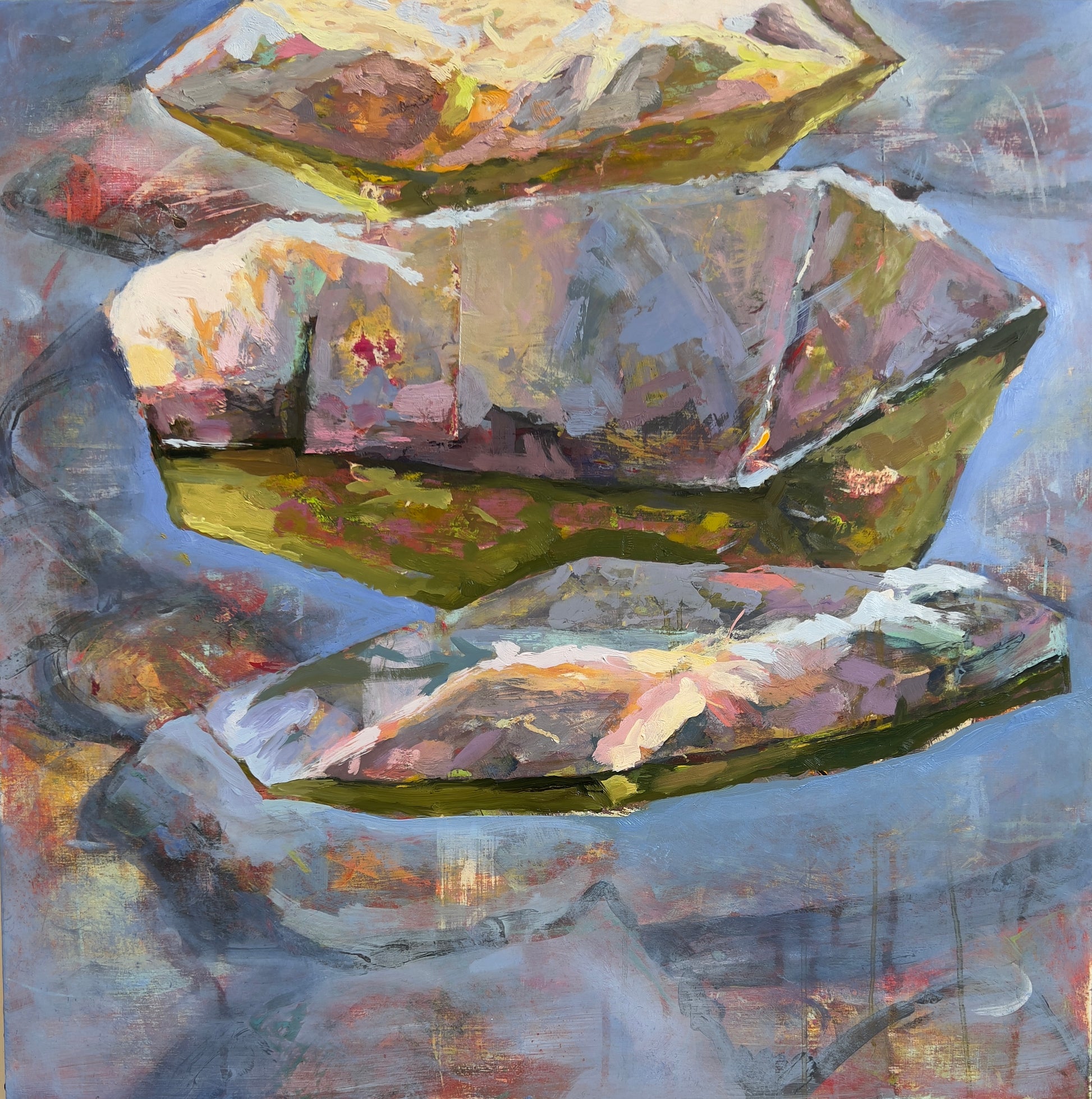 Compassion, 20" x 20", Mixed media on Birch panel. acrylic, collage, oil & oil stick.