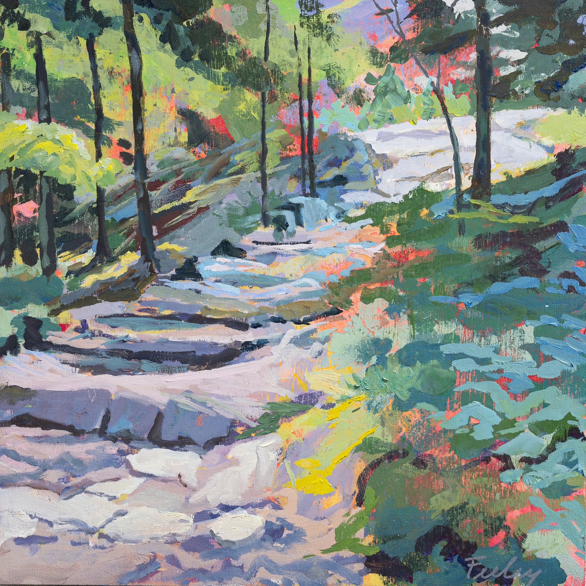 Flying Mountain, 12” x 12”, layers of acrylic, oil paint on birch panel, framed